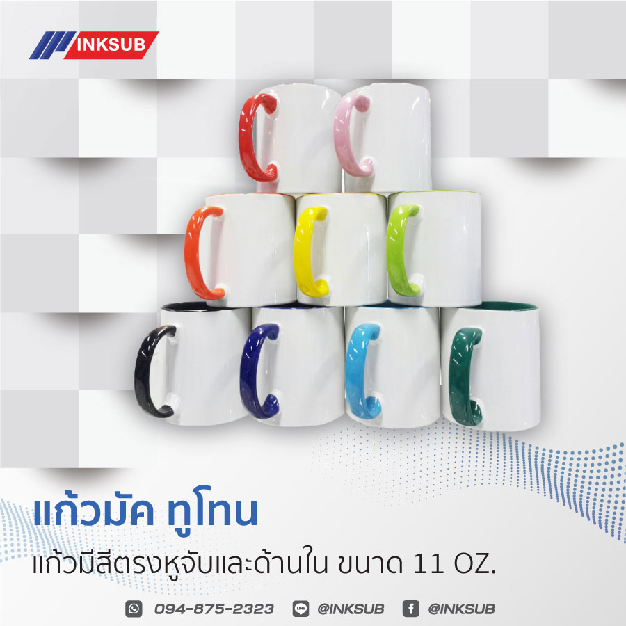 อีเมลล์: inksublimation@gmail.comแก้วมัคสีทูโทน 11 ออนซ์ สำหรับสกรีนซับลิเมชั่น ( ยอดฮิต ขายดี!! )